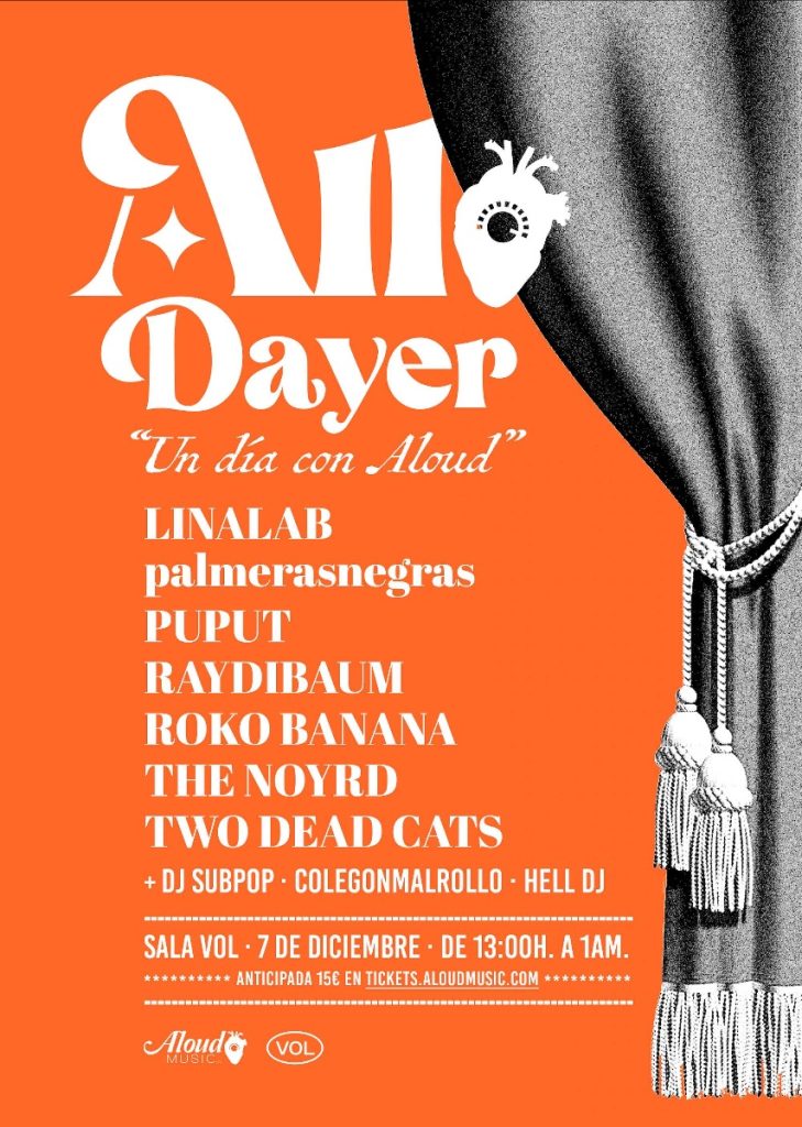 Bautizado como ‘All-Dayer: Un día con Aloud’, este evento propone siete conciertos consecutivos desde las 13 h. hasta pasada la medianoche en la que actuarán artistas pasados y presentes de su escudería: palmeras negras, Roko Banana, Puput, Linalab, Two Dead Cats o Raydibaum y The Noyrd. Además también amenizarán la jornada las sesiones de Subnoise DJ, a Colegonmalrollo DJ, DJ Hell y alguno más por confirmar.