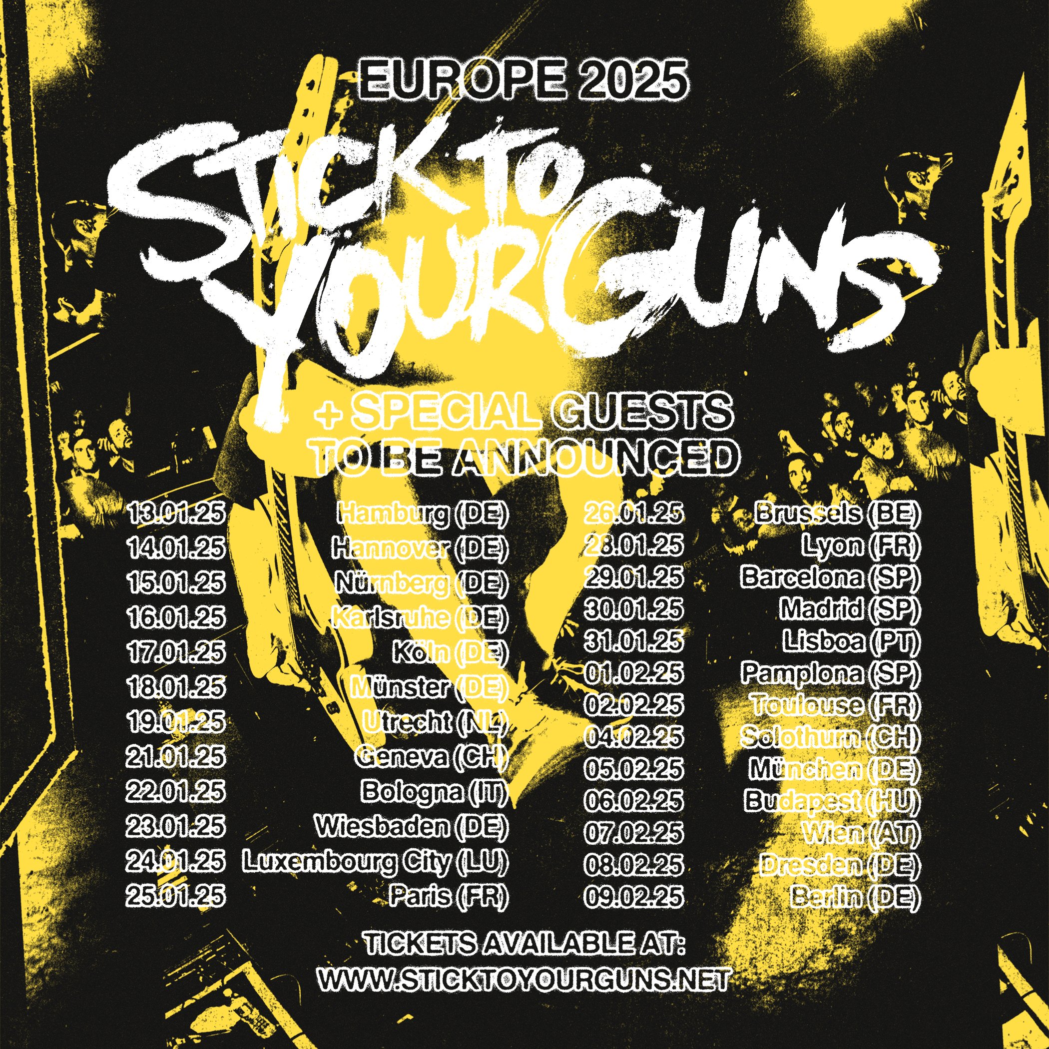 Ya entrados en 2025, Stick To Your Guns llegarán a España dentro de su nueva gira europea. Estarán acompañados por tres bandas más todavía por anunciar.