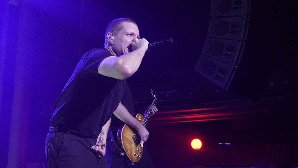Pasaban un par de minutos de las nueve y media cuando Deafheaven salieron al escenario mientras sonaba de fondo ‘Incidental I’ de su último trabajo, Lonely People With Power, del que se alimentaría la mayor parte del repertorio. Y, como pasa con algunos equipos de fútbol cuando saltan al campo, simplemente por su porte se olía goleada. Y así fue. El primer mordisco llegó con ‘Doberman’ y, de inmediato, se hicieron evidentes dos cosas: primero, suenan más profesionales que nunca, con un sonido impoluto y potente, aunque moderado de volumen y algo falto de dinámica; segundo, es como si la banda hubiera pasado por un campamento intensivo de presencia escénica. Si antes los músicos parecían clavados al suelo, ahora se mueven constantemente por el escenario (en especial el guitarrista Ian Waters, sustituto temporal de Shiv Mehra) y no se cortan a la hora de hacer poses, levantando los mástiles al aire, subiéndose a las tarimas frente al escenario y, en el caso de George Clarke, creyéndose de verdad su papel de frontman animando a la gente a botar y hacer stage diving. La conexión instantánea con el público me recordó a la que vivimos con Ghost en 2015 en este misma sala.