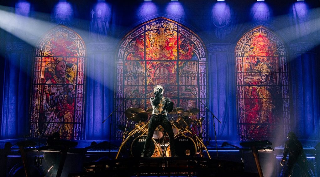 Antes de renovar nuestros votos de fe, tuvimos tiempo de chequear a las dos bandas invitadas para este Imperatour. Entre que recogíamos nuestra acreditación y accedíamos al recinto, apenas cazamos las últimas canciones de Twin Temple. Si en su anterior visita de 2019 comenté que Tribulation podrían ser justo lo que uno espera encontrar en Ghost cuando ve por primera vez su estética, el combo liderado por el matrimonio que forman Alexandra y Zachary James vendrían a ser su equivalente en versión rockabilly. No en vano ellos definen su música como doo-wop satánico, y la verdad que con esa imaginería sacada de The Munsters y La Familia Addams dan el pego. Incluso realizaron un acalorado ritual antes de despedirse. Por lo poco que pudimos ver, resultaron curiosamente entretenidos.