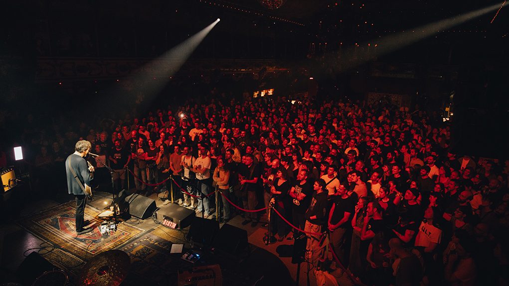 Y eso es precisamente lo que ha hecho el músico de Lekunberri. Y lo que vino a demostrar en el concierto con el que despedía en Catalunya la gira de Hasiera Bat en la sala de baile La Paloma. Un espacio del que destacó su «encanto arcaico» antes de rasgar los primeros acordes de ‘Lilura Bat’. Ese guiño —«Gero euriak lurra du ernaltzen / Berrituz nigan lilura arkaiko bat», rezan las estrofas de la canción— vino a dejar claro que ni en ese concierto ni la manera en que está gestionando su carrera en solitario hay nada dejado al azar, ni nada que no tenga una audaz vocación estética. Solo hacía falta ver el variado y cuidadísimo merchandising: había hasta camisetas con estética death metal con el mensaje ‘ibai ertzean utzi ditut ezpata eta ezkutua’, que cerraban el círculo ‘arcaico’.