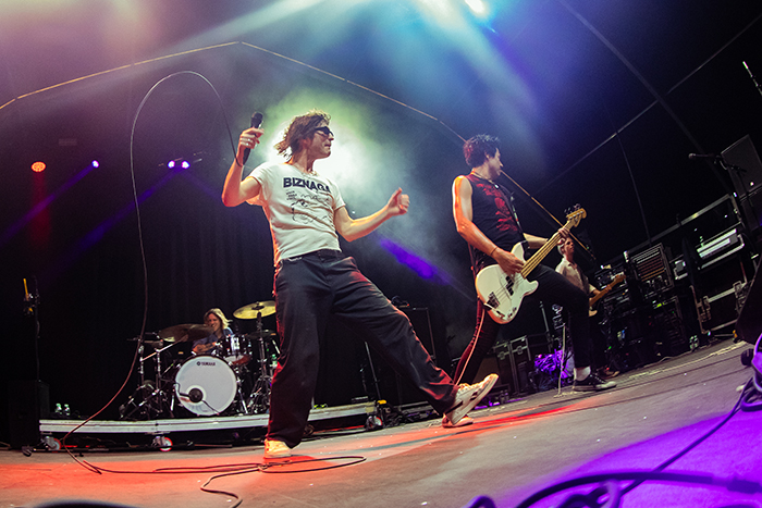 Antes de volver a adentrarnos en una de las carpas, vimos como el popular Benson Boone hacía una entrada espectacular ejecutando un salto mortal nada más salir a escena. Sinceramente, me quedé con ganas de comprobar la valía de este norteamericano que saltó a la fama el pasado año con el hit viral ‘Beautiful Things’. Pero tenía que quitarme la espina de no haber presenciado todavía Bad Nerves tras su cancelación en el último minuto abriendo para Descendents en Barcelona y perderme su posterior gira por salas. Para mi sorpresa, el escenario cubierto presentó un buen aforo, pero lejos de estar abarrotado teniendo en cuenta el crecimiento exponencial que vienen experimentando.