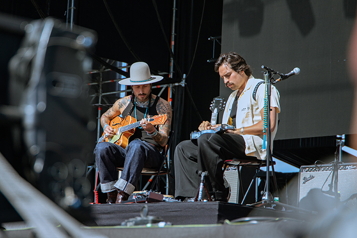 Regresamos temprano al recinto para una segunda jornada que se presentaba también calurosa. En ese contexto, la música de Hermanos Gutiérrez encajaba como anillo al dedo. De madre ecuatoriana y padre suizo, lo que despliegan Alejandro y Estevan es de un minimalismo tal que parece hasta fácil, pero precisamente ahí reside gran parte de su encanto. Armados cual bandoleros con sus guitarras y ocasionalmente con el lap steel y unas percusiones en loop, los Gutiérrez nos llevaron de paseo por el desierto a ritmo cumbia psicodélica e instrumental. Como si conformaran la versión latina de una banda sonora parauna película de Sergio Leone, títulos tan seductores y enigmáticos como ‘Thunderbird’, ‘Tres Hermanos’, ‘Low Sun’ o ‘Sonido Cósmico’ sentaron de maravilla entre una congregación sorprendentemente respetuosa ante su propuesta.