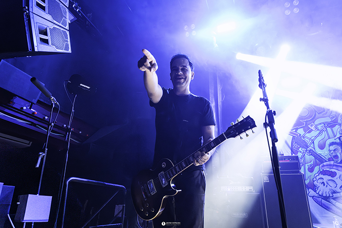 Los primeros en salir al escenario fueron Puk 2, viejos amigos de los protagonistas de la velada. Y es que el trío de Burriana también giró con los catalanes hace ya 20 años. David, Raúl y Draki llevan desde entonces tocando sin parar y eso se nota encima de las tablas. Abrieron su show con ‘El rugido del Kraken’ y a partir de aquí, durante apenas media hora, repasaron sus cuatro discos hasta la fecha con momentos muy celebrados como esa oda a la amistad titulada ‘Sportcore’ y la final ‘Bala perdida’ a dos voces. Te podrá gustar más o menos su punkpop deudor de Blink 182 y Four Year Strong, pero sonaron compactos como una roca y derrocharon energía y buen rollo. Si una banda tenía que abrir para No Way Out, eran ellos.