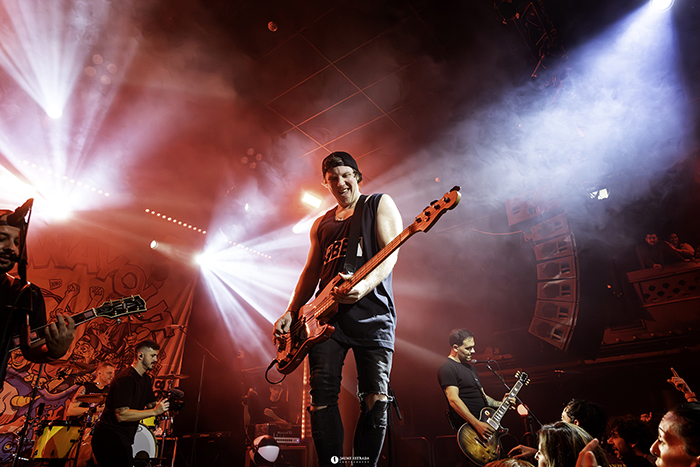 Mientras la banda iba como piloto de combate, la noche tuvo pinceladas de bolo-espectáculo en herencia de bandas de estadio como Simple Plan, The Offspring o Green Day, referentes para los de Cerdanyola, con personajes disfrazados de unicornio irrumpiendo en el escenario para lanzar camisetas, cañonazos de confeti y pelotas de playa sobrevolando la sala. No faltaron tampoco los stagediving y saltos mortales mientras varias cámaras capturaban cada segundo de aquella noche tan especial.