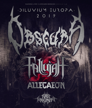 Death metal técnico y cerveza: este año el mejor regalo de San Valentín nos llegó directo desde Munich. Después de cerrar el ciclo de su tetralogía conceptual con Diluvium, Obscura recorren media Europa durante el mes de febrero para defenderlo. Cinco discos de estudio han sido necesarios para que la banda emprenda una gira de esta magnitud como cabezas de cartel. Por suerte el merecido reconocimiento no llega tarde, ya que los germanos se encuentran en plena madurez musical. Este viaje en cuestión no lo hicieron solos, ya que acompañándolos en su gira encontramos a otras tres bandas de su mismo género.