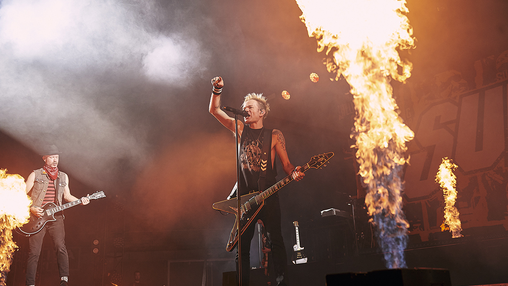 Al ritmo del ‘TNT’ de AC/DC y con extrema puntualidad, el telón que cubría el escenario cayó para desvelar a unos Sum 41 dispuestos a atacar con una triada inicial que permanece inamovible desde hace tiempo en sus setlists. Quienes ya los hemos visto varias veces en sus últimas giras no nos sorprendió que enlazaran ‘Motivation’, ‘The Hell Song’ y ‘Over My Head (Better Off Dead)’ con un desparpajo que contagió al pabellón entero en cuestión de segundos. Y es que, aunque haya tramos del concierto que ya conoces de memoria, verlos salir con semejante energía es siempre un chute.