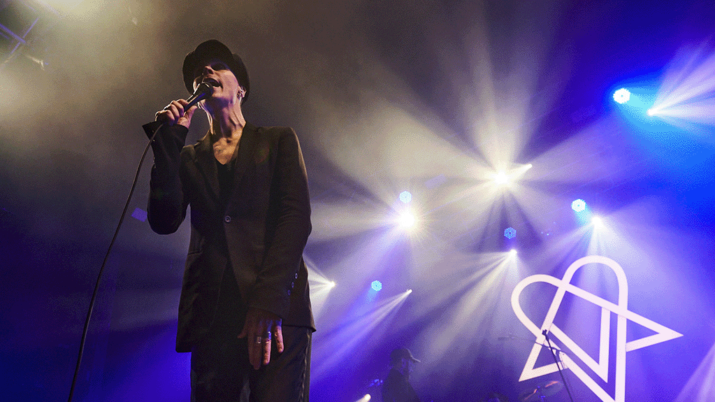 Pasada la media hora de espera de rigor y retirado el telón negro que había tapado parte del escenario durante la actuación de las islandesas, el famoso logo Heartgram formado por neones se encendía para acabar formando una VV que indicaba que el protagonista de la noche iba a hacer su entrada. Muy delgado, vestido con americana negra y la misma boina que luce en la portada del disco, los gritos de emoción no tardaron en aparecer.