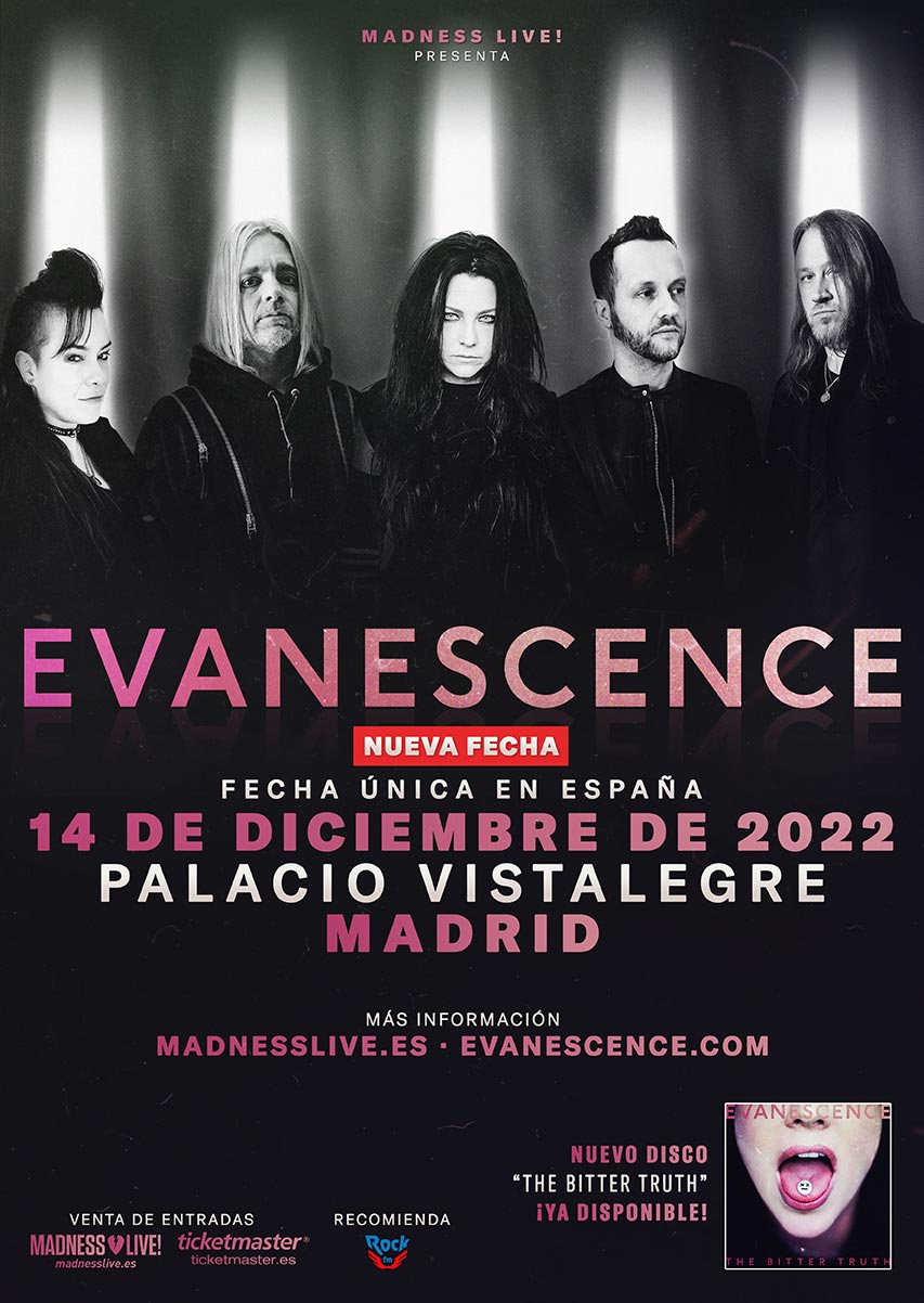 Tras posponerse hasta tres veces por culpa de la pandemia, Evanescence han confirmado una nueva fecha para su concierto en Madrid. Finalmente será el próximo 14 de diciembre cuando Amy Lee y su banda actúen en el Palacio Vistalegre.