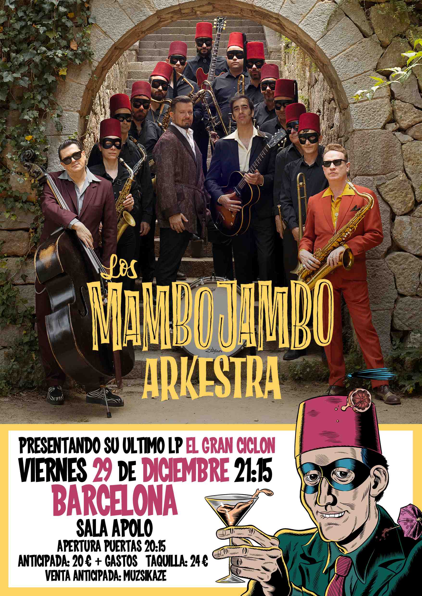 Los Mambo Jambo cerrarán el año presentando su último disco El Gran Ciclón en la sala Apolo de Barcelona. Al igual que en el álbum, el cuarteto estará acompañado de los 12 músicos adicionales que configuran el formato Los Mambo Jambo Arkestra.