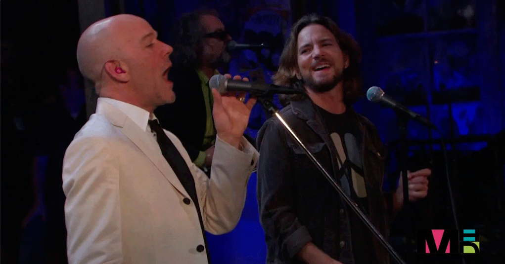 El frontman de Pearl Jam había sido el encargado también de dar el discurso de bienvenida al grupo, pero cuando se le vio realmente cómodo fue le dejaron cantar.