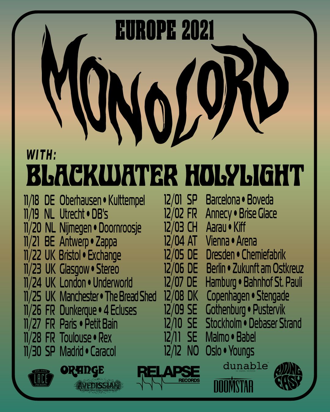 La banda también ha dado a conocer las fechas de su gira Europea junto a Blackwater Holylight, entre las que figuran dos citas en España: el 30 de noviembre en Madrid (Caracol) y el 1 de diciembre en Barcelona (Bóveda).