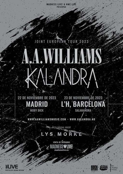 La cantante y multiinstrumentista A.A. Williams (en la foto) actuará el 22 de noviembre en Madrid (Moby Dick) y el 23 de noviembre en Salamandra (Barcelona) presentando su último disco As The Moon Rest, publicado el años pasado. Los amantes del folk oscuro y lo gótico no querrán perdérselo. Como artistas invitados contará con los noruegos Kalandra y la catalana Lys Morke.