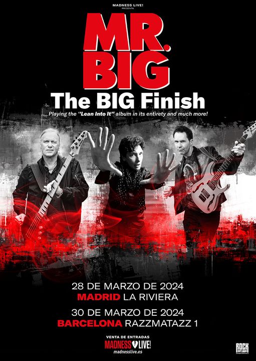 Mr. Big actuarán el 28 de marzo en Madrid (La Riviera) y el 30 de marzo en Barcelona (Razzmatazz 1). Las entradas se ponen a la venta a las 10 horas de mañana viernes 8 de septiembre en la web de Madness Live!.