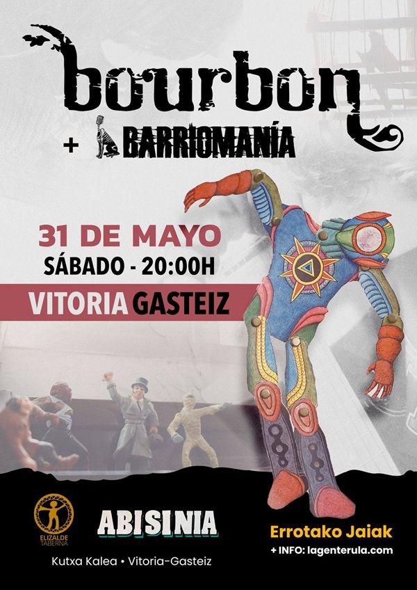 Por su parte, Bourbon realizarán una salida rumbo al norte el próximo fin de semana. Primero harán parada en Talavera de la Reina el viernes 30, donde presentarán su álbum homónimo del año pasado en la cervecería La Fábrica. En este caso la entrada funciona con taquilla inversa. Es decir: al finalizar el concierto, cada asistente aportará la cantidad que considere oportuna.