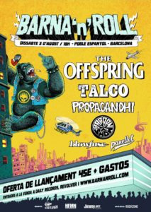 Parece que 2019 va a ser un año muy punk rockero. A la ya anunciada gira Punk In Drublic, ahora hay que añadir otra gran cita. El festival Barna ‘N’ Roll ha confirmado su cartel y pinta estupendamente. The Offspring, Propagandhi, Talco, The Baboon Show, Blowfuse y Panellet estarán el 3 de agosto en el Poble Espanyol de Barcelona.