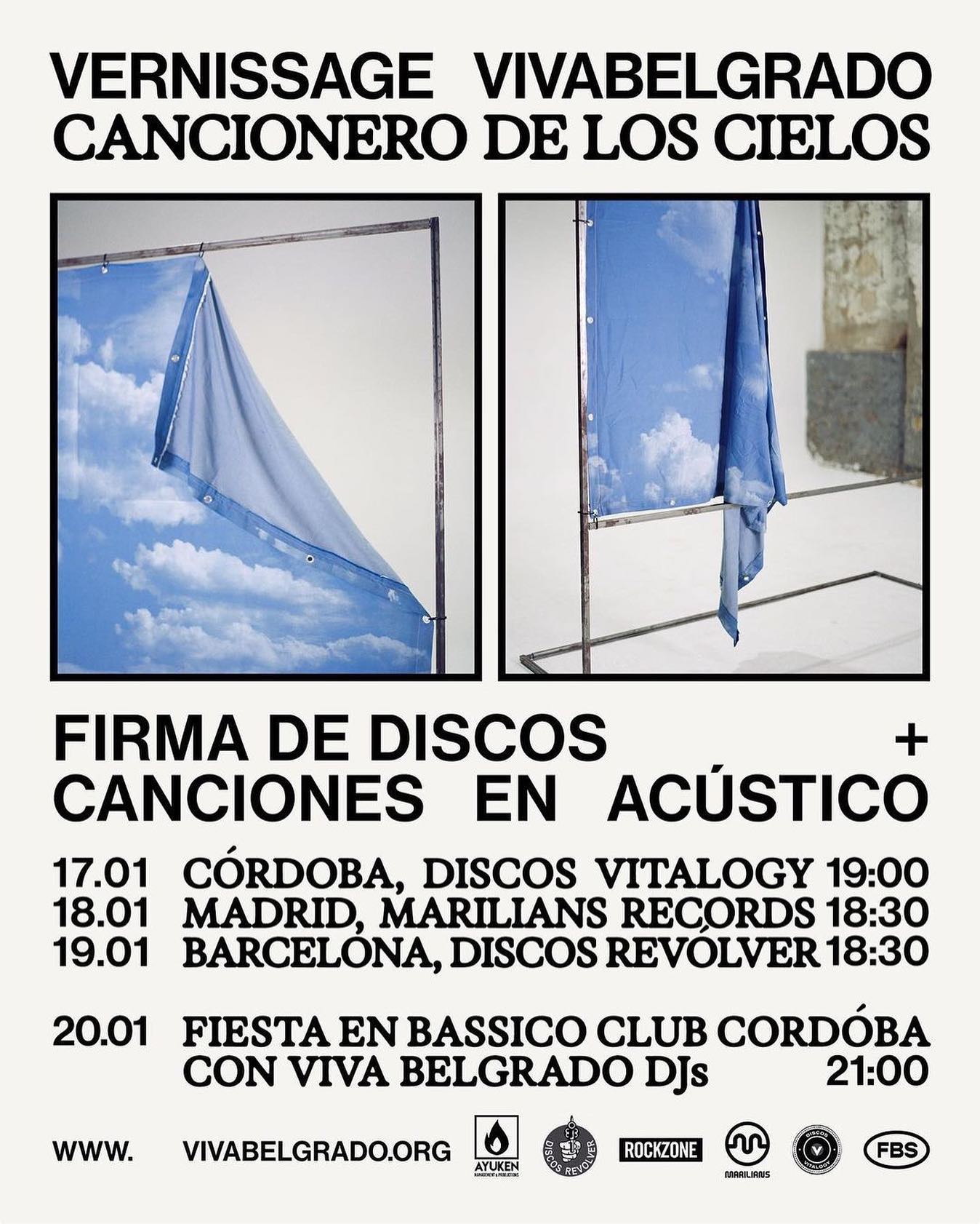 Viva Belgrado, protagonistas de nuestra portada digital de enero, apoyarán el lanzamiento de su nuevo disco Cancionero De Los Cielos la semana que viene con tres apariciones en tiendas de discos emblemáticas de la geografía, donde además de firmar, interpretarán algunos temas en acústico.